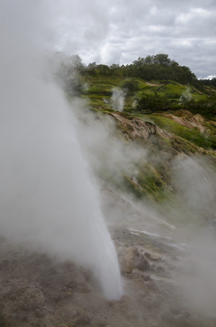 Фонтан - один из немногих крупных гейзеров, переживших оползни 2007 и 2014 годов. Благодаря своему возвышенному положению Фонтан не страдает от катастрофических оползней и селей, которые продолжают сходить по реке Гейзерной, нарушая режим тех гейзеров, которым не повезло оказаться ближе к её руслу. Я считаю извержения Фонтана самыми красивыми в Долине гейзеров.