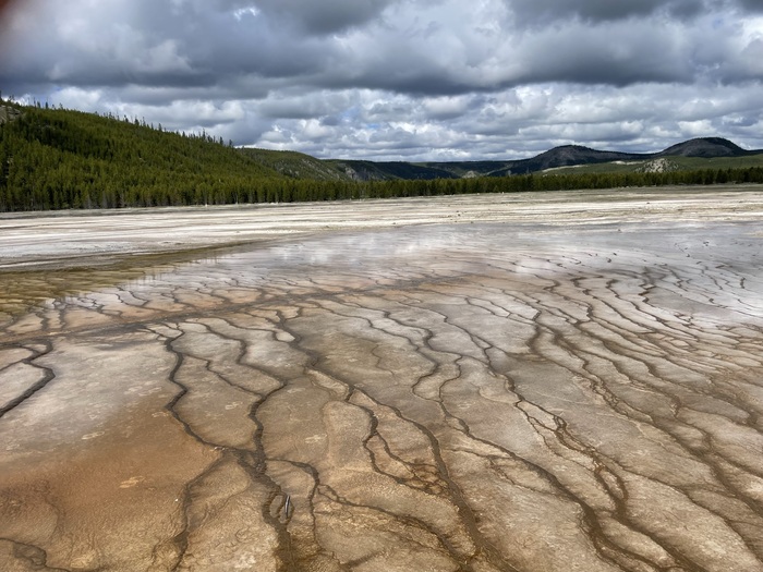 Вся эта хрень шкворчит, плюётся, фыркает и вскипает пузырями, выпуская пар. Загадочное место этот плоский действующий вулкан.