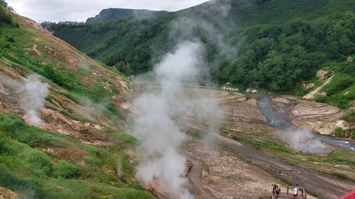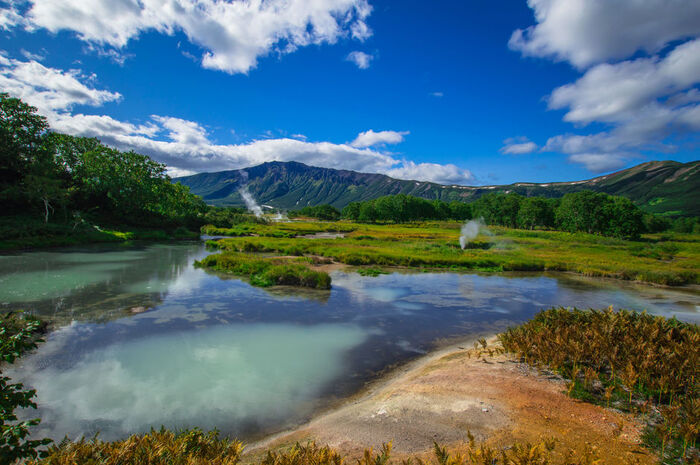 Еще одно место в России, где можно увидеть извергающиеся из-под земли столбы воды и пара, — это Малая долина гейзеров. Находится неподалеку от Петропавловска-Камчатского. Хотя это и не совсем типичные гейзеры, это фумарольное поле высокой активности. Здесь горячие газы проходят под землей и соприкасаются с холодным ручьем. Именно эта разница температур и рождает выбросы пара.