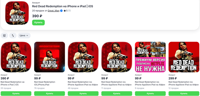 Для ясности: на странице с мобильной версией RDR в основном продаются аккаунты, которые позволяют играть без подписки на Netflix и тем более приобретения игры за 40 долларов. Т.е. продавец покупает на аккаунт игру, а потом продает данные от аккаунта, чтобы вы могли скачать Red Dead Redemption и играть.
