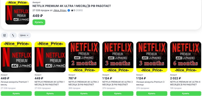 2. Теперь нужно оформить саму подписку на Netflix. Проще всего сделать это на маркетплейсе ggsel. Тут же можно купить уже готовый зарубежный аккаунт с заранее активированной подпиской и пропустить первый шаг.
