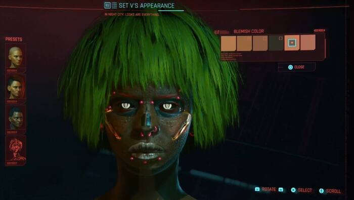 Найт-Сити — город контрастов. Здесь можно поставить себе золотую кожу, светящиеся тату и… самые странные причёски в истории человечества. Редактор Cyberpunk 2077 позволяет создать персонажа, который выглядит так, будто он проиграл спор в мастерской у очень пьяного рипера. Синие губы, оранжевые глаза, металлические швы через всё лицо — и вот ваш Ви уже не наёмник, а экспонат выставки «Ошибки кибернетики». Зато в кат-сценах от первого лица не так страшно (пока в зеркало не посмотришь).