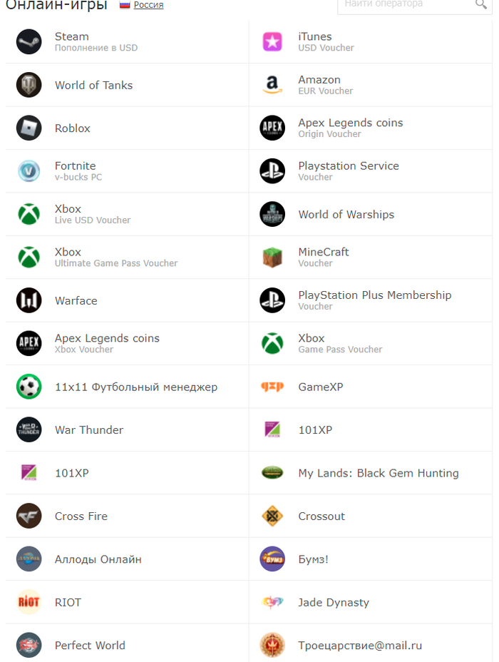 Так же можно пополнять и другие платформы, полный список по этой ссылке: https://telepay.wmtransfer.com/ru/online-games