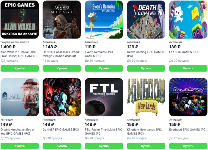 Ключи доступны на маркетплейсах вроде ggsel, где предлагаются коды для активации на различных платформах. Важно убедиться, что в описании товара указан именно Epic Games Store (EGS) в графе «активация» или «платформа».