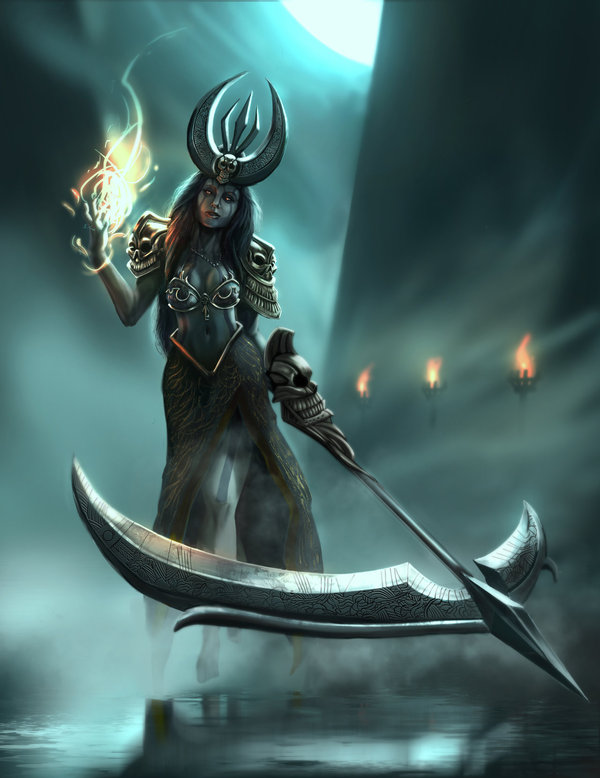 Если обратиться к теории британского писателя Грейвса Триединая богиня, архаичное женское божество, женское начало, предстаёт в архетипах «девы», «матери» и «старухи», которые соответствуют земным воплощениям трех стадий женской жизни. Также перевоплощение Богини связано с тремя фазами Луны, как магическим светилом: молодой месяц, полная луна и убывающий месяц.