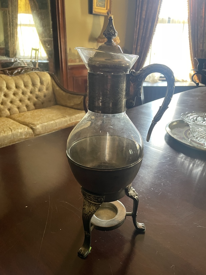 Как обычно, наведался на один из местных развалов. Общие планы не снимал, так как там все то же и все те же. Сегодня попался интересный графин для горячих напитков с подогревом: Внизу ставится спиртовая горелка и можно не опасаться, что кофий остынет. Я больше по чаю, но мне понравился внешний вид и концепция