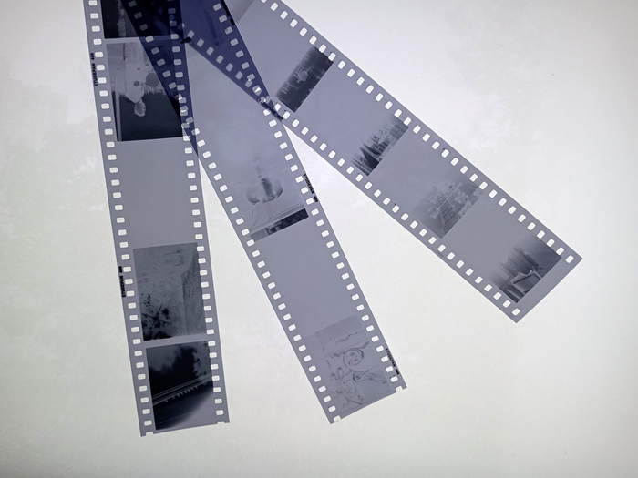 Разумеется, у одного фота шторка открывалась наполовину. Ожидаемо, самую первую плёнку я порвал. Ну и чтоб два раза не вставать, ещё и засветил. Но кое-что проявить удалось. Для первой проявки пользовался помощью фотолаборатории для подстраховки: чтобы точно определить, работает ли фот.