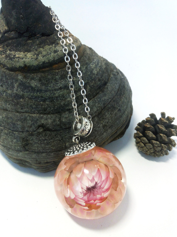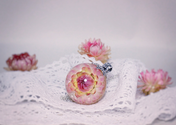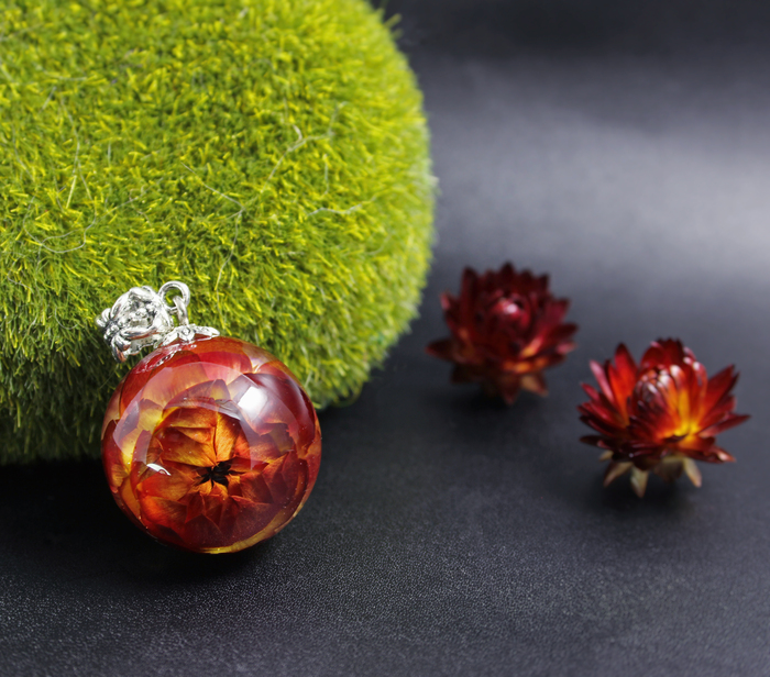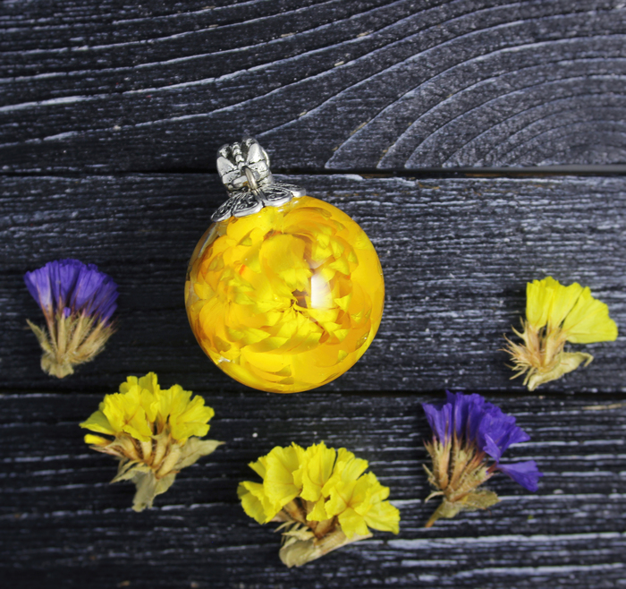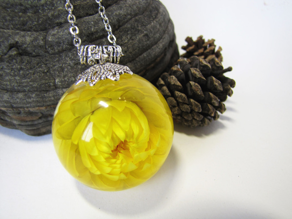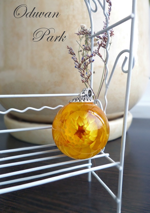 Первый блин и НЕ комом. Кулон-сфера с Гелихризиумом.