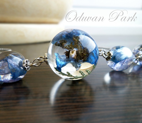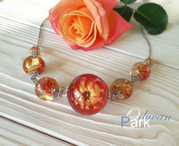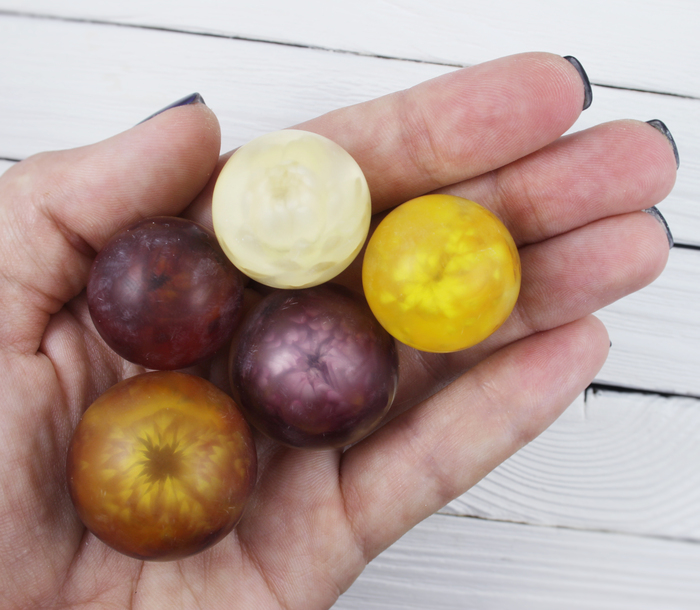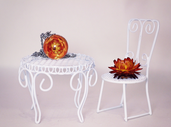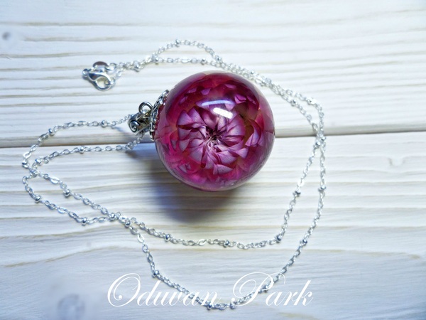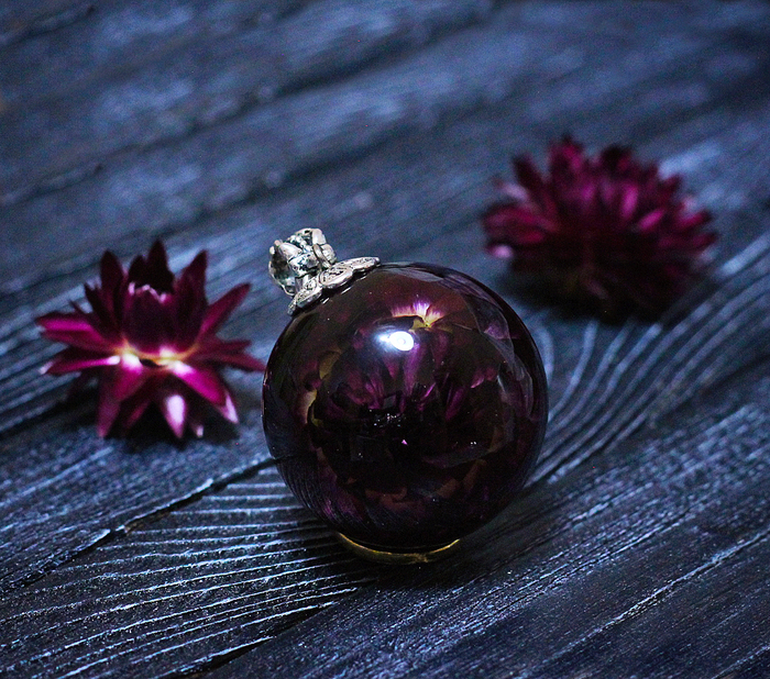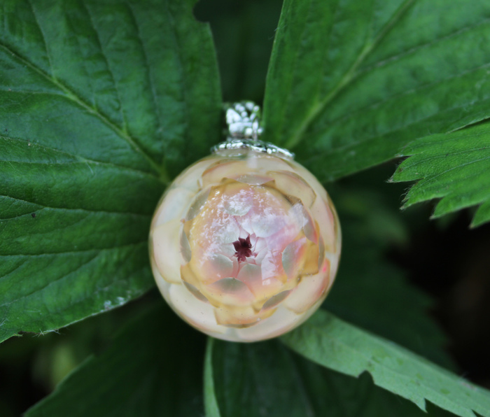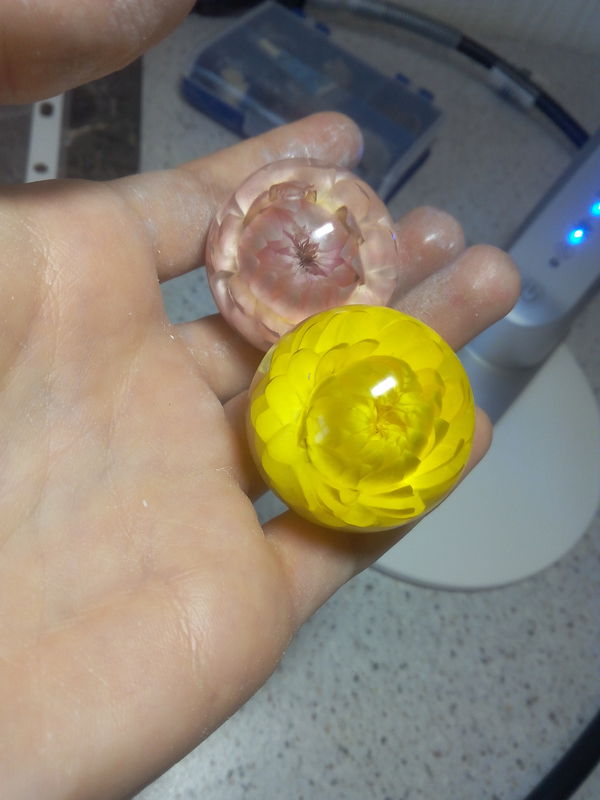 Наверно, уже почти всем известны этапы такой работы - подходящий цветочек помещается в силиконовую форму шара, заливается прозрачной эпоксидкой, после застывания шарик шлифуется и полируется. А потом устраивается фотосессия)