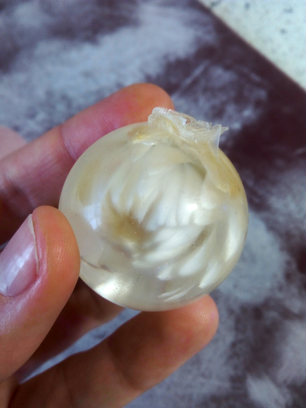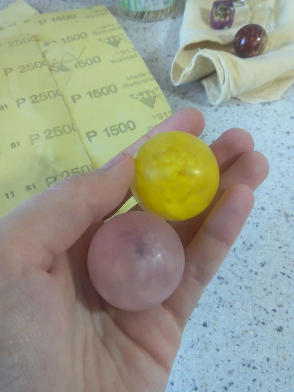 В течение суток она застывает, я достаю получившийся шарик, и если качество заливки хорошее, наступает этап шлифовки-полировки.