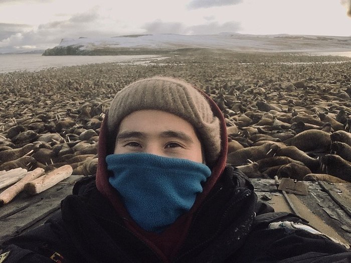 Я читаю статистику ледовой обстановки, в начале 20 века там было много льда. Сегодня весь ареал страдает от глобального потепления, вижу в таких отдаленных местах. От этого в первую очередь страдают животные: белые медведи, моржи, киты.
