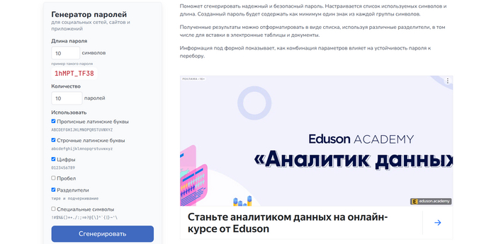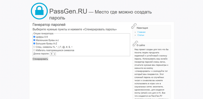 Старый добрый генератор паролей, в котором есть возможность указать длину пароля. Не самые обширные настройки, но тоже сгодится для генерации.