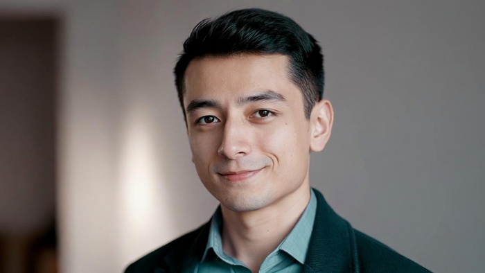 3. Персонажи и портреты. Создай реалистичный портрет молодого человека 30 лет в деловом стиле: нейтральный фон, мягкий свет, спокойная поза, лёгкая улыбка, одежда — однотонная рубашка и пиджак, образ вызывает доверие и профессионализм.