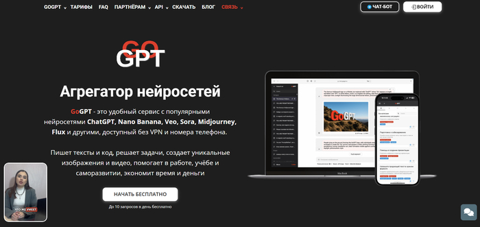 Gogpt — мультисервис с доступом к различным нейросетям, включая генерацию изображений, где пользователь выбирает нужную модель и формат работы под свои задачи.