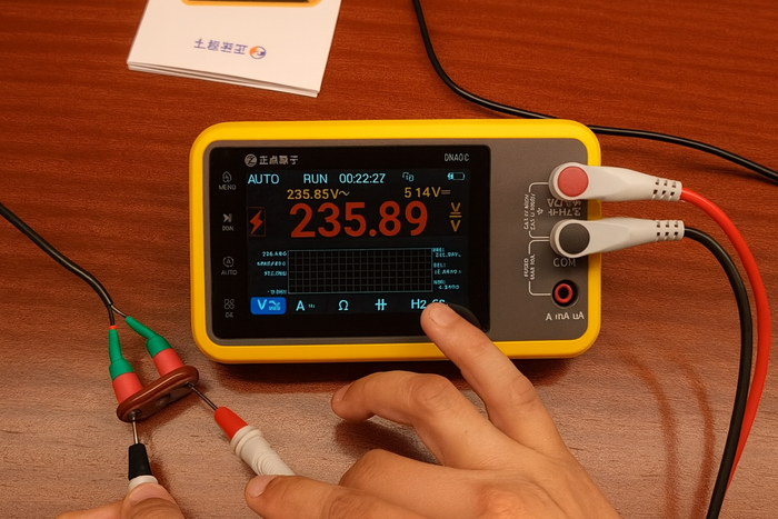 Сенсорный экран реагирует быстро, без задержек и подвисаний, что особенно важно для работы с осциллографом. Дополнительные кнопки позволяют быстро регулировать яркость или переключать режимы, а разъёмы мультиметра продуманы так, чтобы легко менять тип измерений.