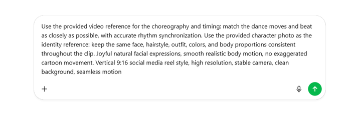 Для Kling Motion Control важно быть конкретным. Вместо фразы "сделай танец", напишите, как именно хотите, чтобы персонаж двигался. Например: "Хочу, чтобы персонаж танцевал хип-хоп, быстрые движения ног, камера движется вокруг него, уличная атмосфера, вечер." Такие детали помогают нейросети понять, что именно вам нужно.