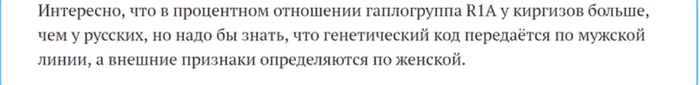 Кыргызы, Узбеки и тд. имеют дофига гаплогруппы R1A , для славяно русов тоже облом, R1a занесли Иранские племена ( не путать с современными переднеазиатами говорящими на арабиизированных языках).
