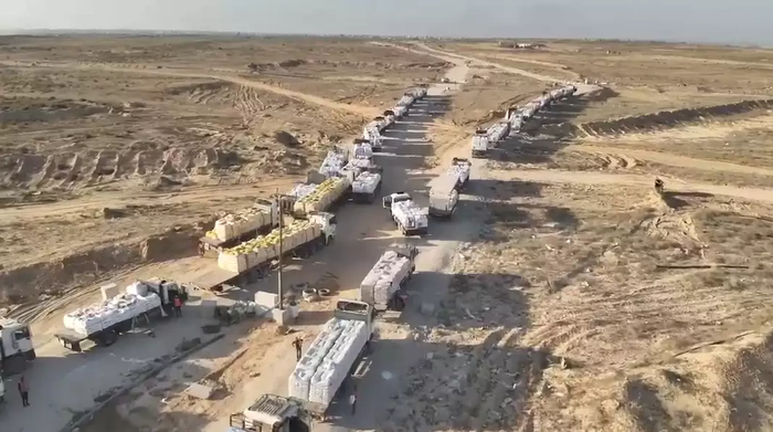 Грузовики на территории Газы в ожидании разрешения на доставку помощи