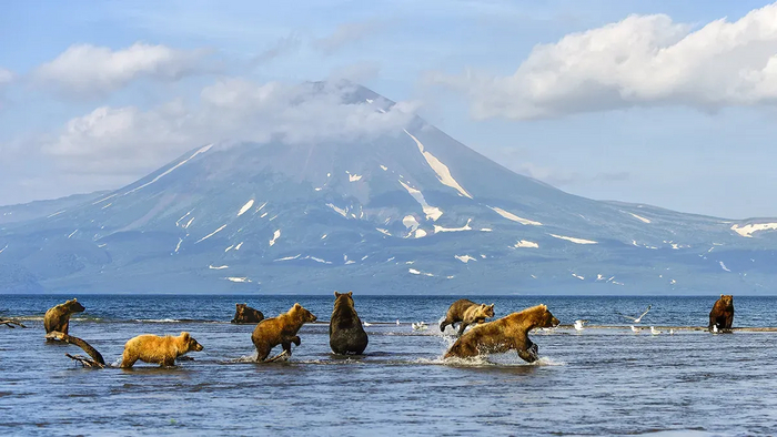 6. На Камчатке обитает одна из крупнейших популяций бурых медведей в мире. Их численность оценивается в 10–15 тысяч особей.