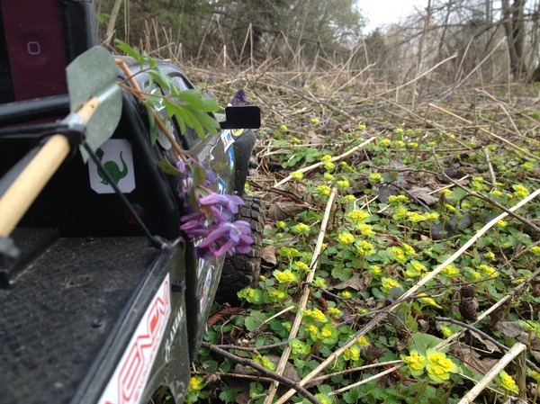 Мы взошли на мост открыли шампанской, сфотографировались и двинули дальше! Паша сжалился над Дашкой и пошел по деревне искать одежду! Нашел в одном доме теплый плащ времен революции, в такой ходили красные доярки поднимать целину! Идем дальше по деревне, видим мужик оттирает последнюю грязинку со своей газели! И говори: