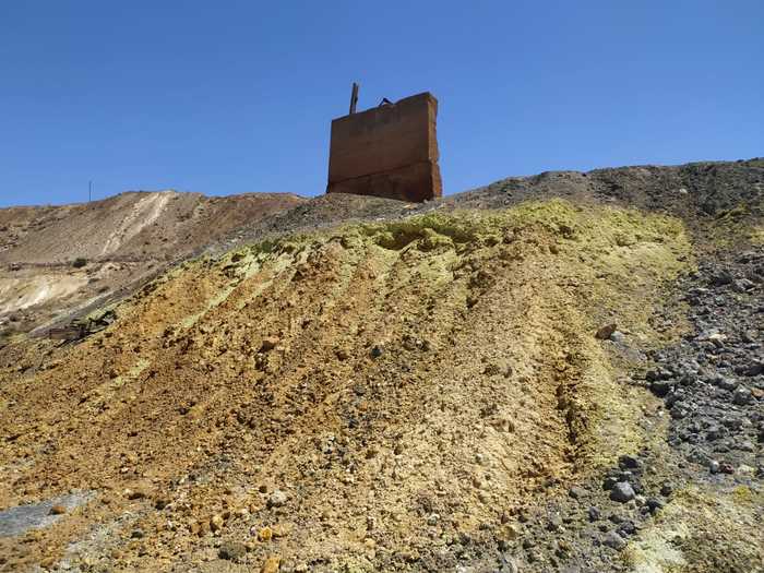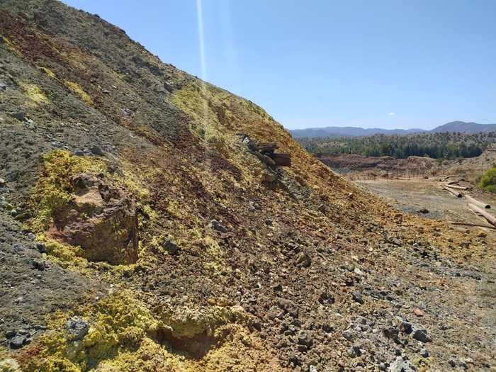 Набрали образцов охры, пирита, медной руды, самородной серы, медных самородков в лавовых отложениях.
