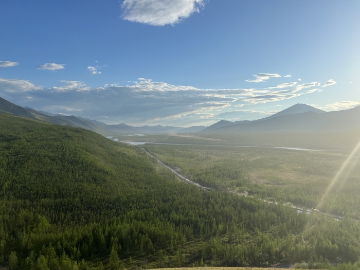 Но Ольчанском перевале останавливаться не стали, как говорится: «Что мы там не видели… то не видели, и это не видели». Обычно я всегда уходил в сторону Октябрьского, а в сторону Маршальского, по федералке, это инстинктивно для меня дорога домой, в Якутск. Немного взгрустнулось, что еще пахать до отпуска как до Китая раком)