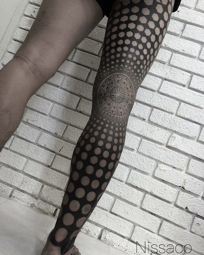 Геометрические фигуры, точки, линии и разнообразные узоры — все эти приемы используются мастерами, чтобы сделать тату более интересными. Роль узора в этом случае выполняют «белые» (незакрашенные) участки тела.
