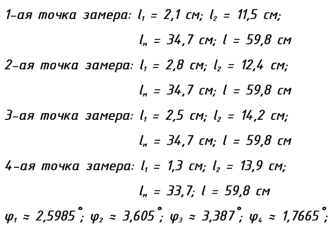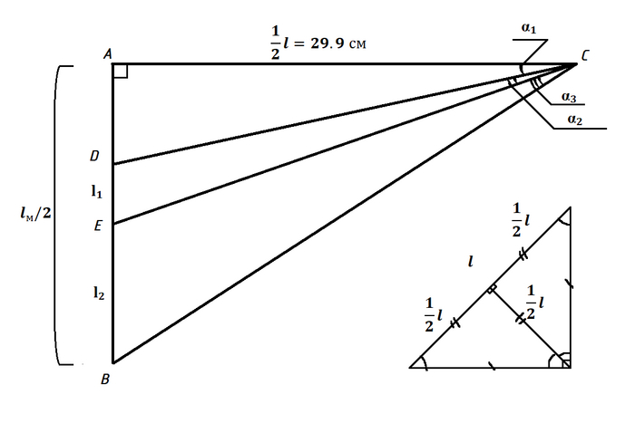 Затем линейкой измеряем все значения, что изображены на чертеже (l1, l2, lм). И после этого довольно простыми действиями вычисляем значение угла DCE