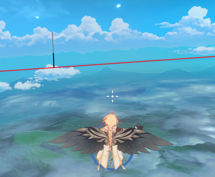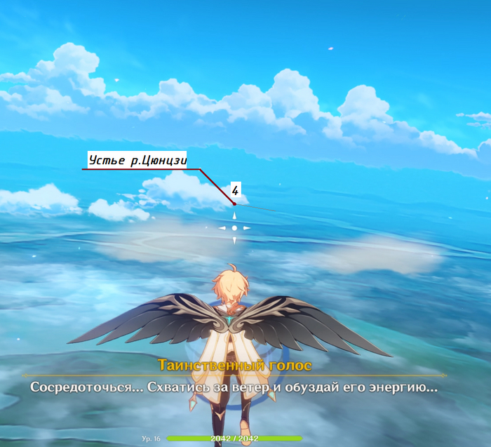 Начнем с масштаба природных объектов. Для этого нам понадобится битва с Двалином в воздухе, а, соответственно и новый аккаунт. А еще несколько вагонов терпения. Запускаем битву и после этого начинаем искать все крупные объекты, которые мы можем увидеть на игровой карте. Разглядеть где там какие границы у Мондштадта (имеется ввиду города) я не смог, ибо его в принципе плохо видно, зато нашел пару других мест и точек