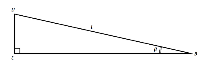 Так как нам уже известна l, то также легко мы можем найти значение CD, умножив гипотенузу на синус угла CBD