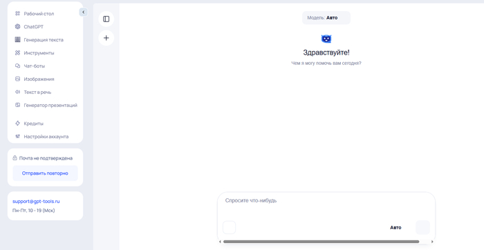 Доступность: полностью бесплатный базовый доступ с ограничениями по количеству запросов (в зависимости от тарифа); для расширенного использования (больше запросов, изображений, презентаций) — платные подписки от 125 руб./мес.