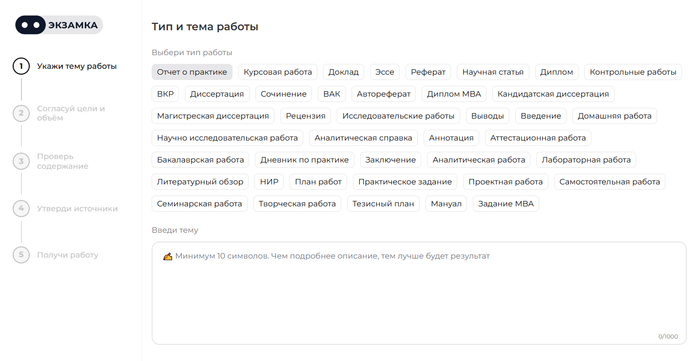 Сервис умеет генерировать текст «под ключ»: от введения до заключения, включая план, литературные обзоры и списки литературы — все, что нужно для полноценной учебной работы.