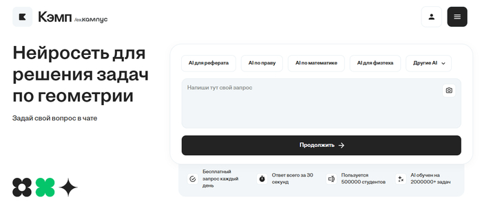 Кэмп — нейросеть для решения математических задач, помогающая выстроить четкую логику рассуждений.