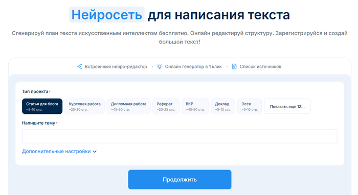 Если вы уже знакомы с популярными ИИ-сервисами, но хотите расширить свой инструментарий, этот список для вас. Ниже — еще шесть нейросетей на русском языке, которые помогут с планом, формулировками и стилистикой при написании отчета.