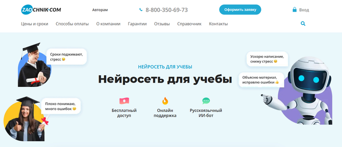 интуитивный интерфейс, интеграция с платформой Zaochnik;