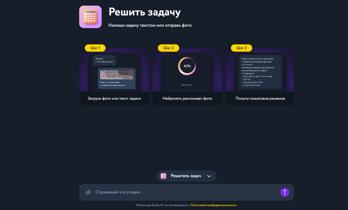 Гибкость ввода: ИИ работает не только с текстом, но и с изображениями и сканами задач.