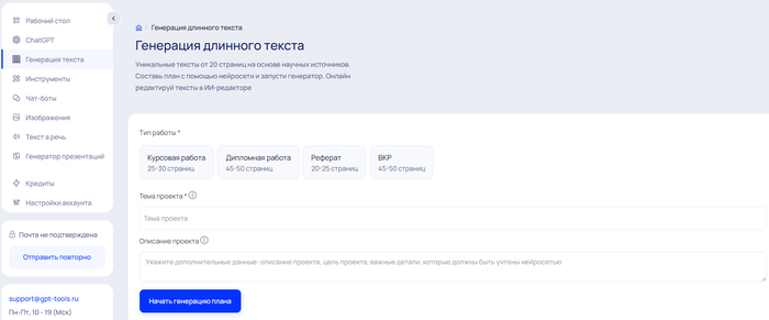 поддержка разных типов заданий — от математических задач до сочинений и дипломных работ;