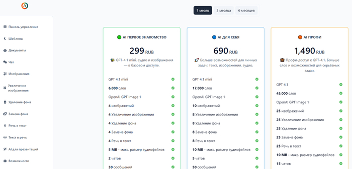 Тарифы: План «СТАРТ» — 199 ₽/нед., «ПРО» — 499 ₽/мес., «УЛЬТИМА» — 999 ₽/мес.