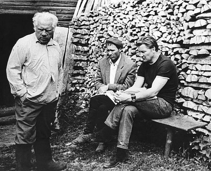 Георгий Бурков,Василий Шукшин,Юрий Никулин и Иван Лапиков на съёмках фильма Они сражались за Родину 1975 год