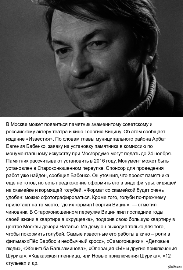 Вицин был йогом,вы знали?:)Причем не поверхностно, а с чистками,правильным питанием,ассанами,а ведь в те времена это вообще было нонсенс...Не пил,не курил,в перерывах между сьемками когда другие перекуривали, он медитировал:)..Мордюкова как то ему сказала - "Разве ты мужик?Ты труп". "Нет, я не труп, я - йог", - подхихикнул актер.