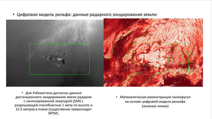 Красными прямоугольниками выделены зоны-кандидаты на коренные источники, зелеными прямоугольниками выделены аномалии в пределах долин.