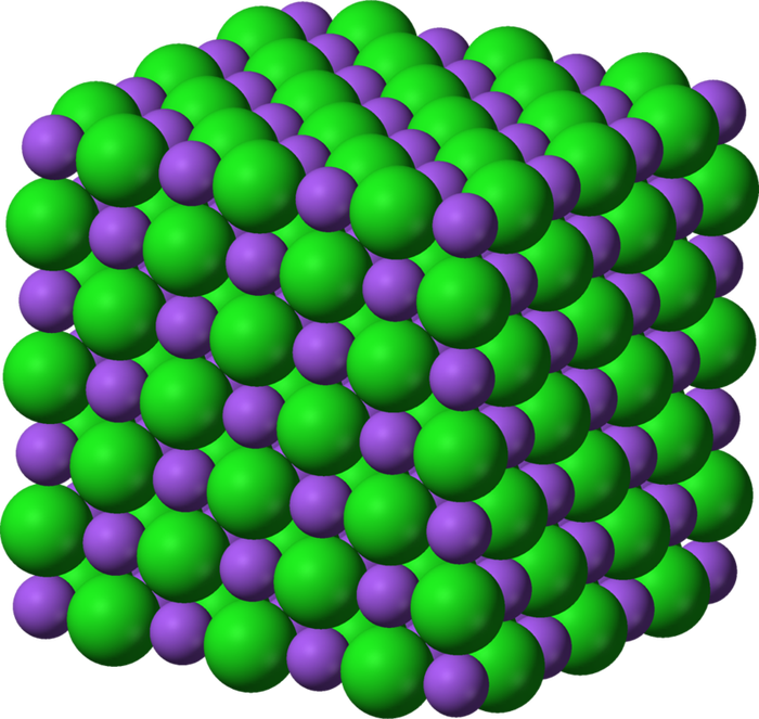 Так выглядит кристаллическая решетка галита (да да, та самая пищевая соль – NaCl)