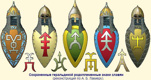 Он пришёл к идее исключить из гербов западноевропейские элементы. В основном используется традиционный для дружинников времён Руси щит каплевидной формы.