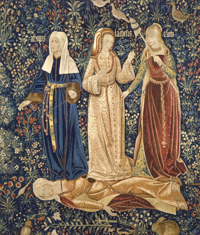 14. В оригинальном мифе о Геракле богини Судьбы Мойры (от греч. Μοῖραι - «участь/судьба/доля») никогда не фигурировали. И три сестры выглядели по-разному: одна была юная, другая - зрелого возраста, третья - старуха. Мойры - либо дочери богини Ночи - Никты, либо Зевса и богини божественного Правосудия Фемиды. Первая, в образе прядущей женщины, олицетворяет собой неуклонное и спокойное действие судьбы, вторая — её случайности, третья — неотвратимость её решений. Клото сплетает нить судьбы из всего, что попадёт ей в руки. Лахесис, не глядя, сплетает нити судеб разных людей между собой и определяет их. А третья – Атропос, расстригает нити судьбы, таким образом убивая людей.