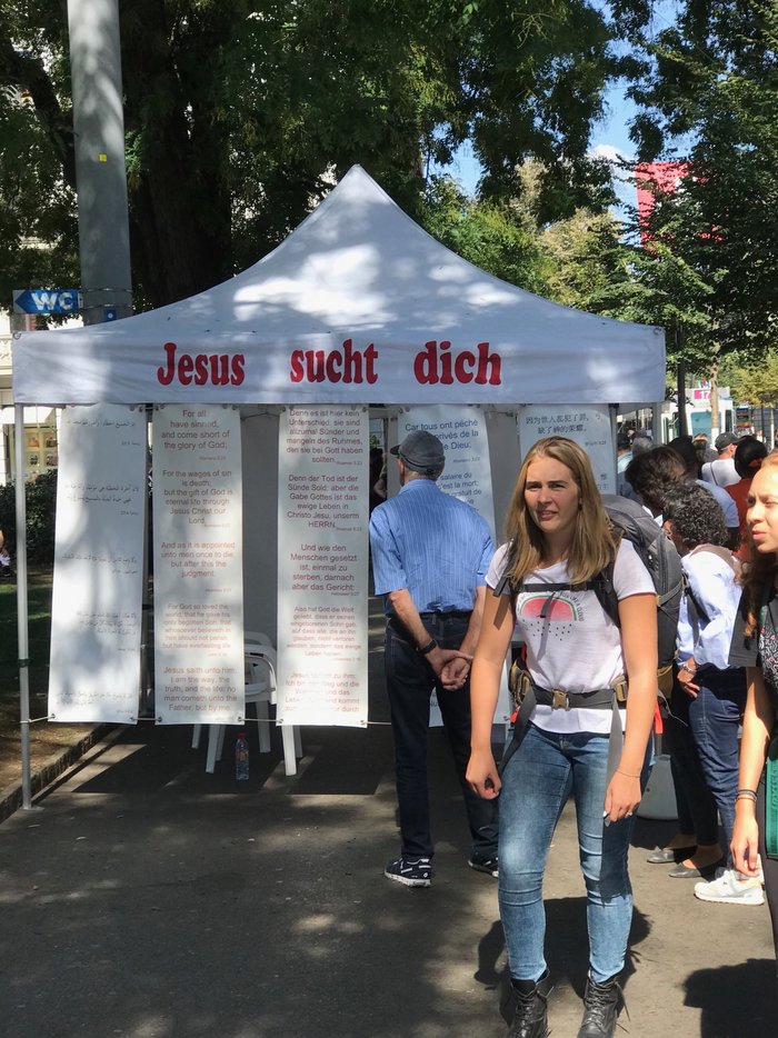 Дело происходит в Швейцарии, где на немецком написано Jesus sucht dich что в переводе значит что Иисус ищет тебя.
