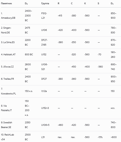 Если проанализировать останки от палеолита до раннего Средневековья (примерно 600 г. н.э.), результат ошеломителен: нулевое присутствие эрбинского кластера L51. Ни в «кельтских» некрополях, ни в курганах Германского круга, ни даже среди носителей культуры колоколовидных кубков — хотя последние считаются эталонными «европейцами» бронзового века.