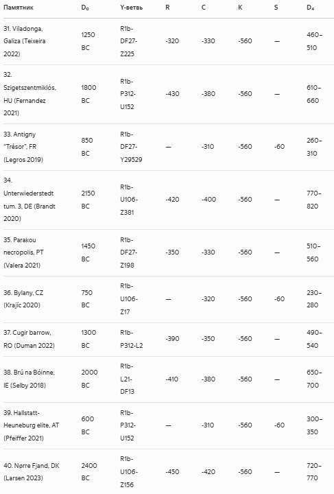 Итог: 40 случаев подтверждают появление R1b-L51 в Европе после 600 г. н.э., отсутствие достоверных «бронзовых» образцов.