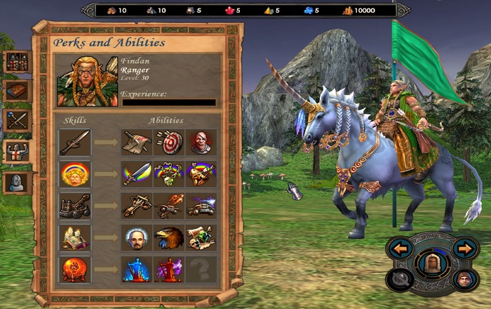 И напоследок затронем игровое поле и движение героя по миру. Герою нужен город, а для развития города нужны ресурсы. Их 7: древесина, руда, кристаллы, ртуть, сера, самоцветы и золото. На карте есть шахты и другие особые строения, позволяющие добывать эти ресурсы. У каждого героя есть очки движения, растрат которых также зависит от рельефа. Так, затраты увеличиваются на равнинной, снежной и песчаной местности. Также герой полностью тратит все очки движения при посадке на корабль и схождении с него, а также при попытке откопать Слезу Асхи(более того, для этого нужно иметь полный запас очков движения). Остановимся на этой довольно уникальной механике. В некоторых миссиях на карте находятся обелиски, осмотрев которые открывается часть от мозаики, как на скриншоте в разделе "История". При открытии всей мозаики, она покажет место, где на карте закопана Слеза Асхи. Герою необходимо прийти к этому месту и откопать ее, затем принести в свой город, после чего игра предложит возвести в нём уникальное строение, увеличивающее прирост золота и существ, а также приносящее дополнительные способности.