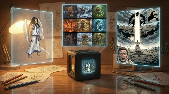 Месяц назад я выкладывал пост о своем 6-экранном кубике и первых попытках сгенерировать для него контент. Знаю, как на Пикабу относятся к потоку однотипных ИИ-артов, поэтому сегодня хочу показать не просто результат, а весь многоэтапный процесс создания осмысленного контента. Это пост-доказательство того, что за хорошей ИИ-генерацией стоит серьезная работа.