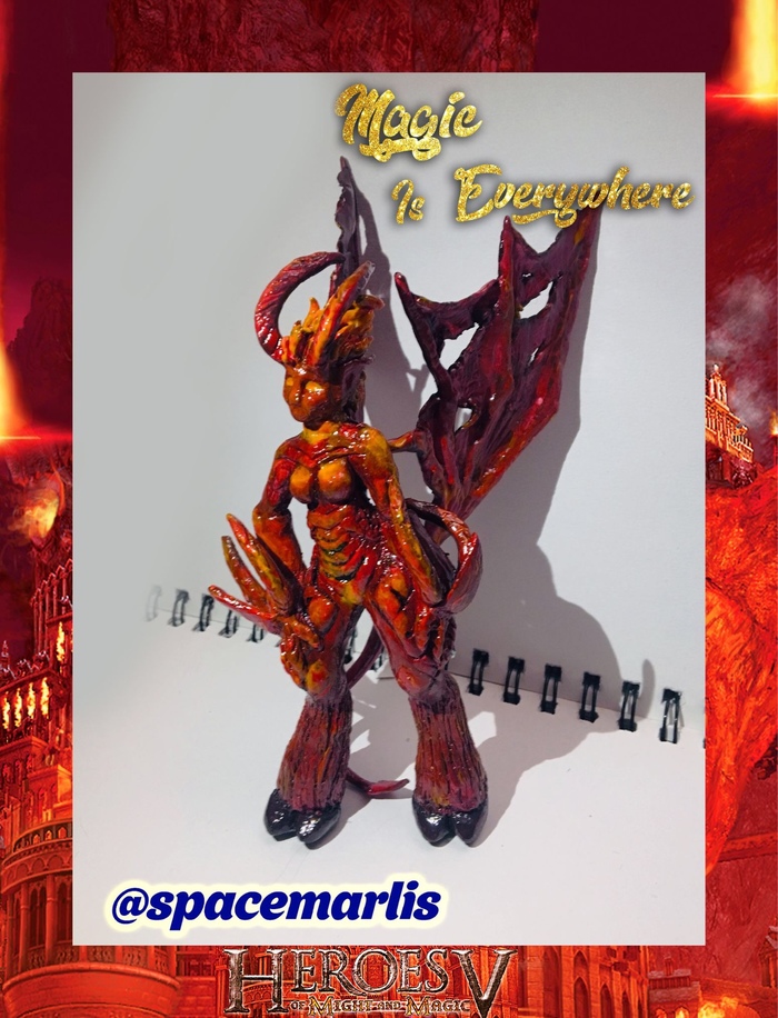 Недавно, Возлюбленный порадовал сюрпризом в виде полимерной глины и решила сразу КОГО хочу сделать.. Ещё одна любимая фракция и герой - Суккуб.. Так как лак был только глянцевый, а изделие нужно было покрыть незамедлительно, пришлось использовать его.. Из-за этого на цифре слишком много блеска, не видно языков пламени по телу, крыльям и цвет передаётся не таким особо.. Планирую купить матовый и попробовать перекрыть.. И в будущем понадобится для котеек..